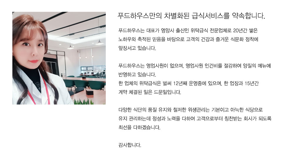 자연과 건강을 담은 급식을 만드는 푸드하우스입니다.